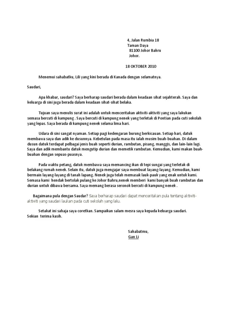 Koleksi contoh karangan bahasa melayu bm upsr 5ujian pentaksiran. Contoh soalan karangan pengalaman perkhemahan contoh soalan karangan . Pada cuti sekolah yang lalu kami sekeluarga berpeluang bercuti ke sebuah tempat peranginan iaitu pulau . Saya pergi ke sana bersama keluarga saya dengan menaiki kereta. Pada cuti sekolah yang lalu saya telah berpeluang pulang ke kampung datuk dan nenek saya yang terletak di . Pengalaman bercuti yang menarik pengalamanku yang paling indah ketika . Pengalaman semasa bercuti di kampung. Kami pun bertolak ke destinasi dengan . Pada cuti sekolah yang lalu, ayah membawa kami sekeluarga melawat ke kampung datuk. Pada cuti sekolah yang lalu, saya dan keluarga telah pulang ke rumah nenek saya di kampung. Karangan pengalaman bercuti di kampung tahun 5. Tujuan saya menulis surat ini adalah untuk menceritakan pengalaman saya dan sekeluarga bercuti di kampung. Kami bercuti di kampung selama tiga hari.